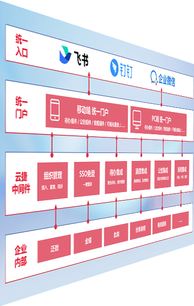对协作平台提供支持服务,,,,支持企业应用与协作平台对接,,包含组织同步、、、、消息集成、、待办集成等。。。。支持目前主流的协作平台:钉钉、、、企微和飞书。。。。